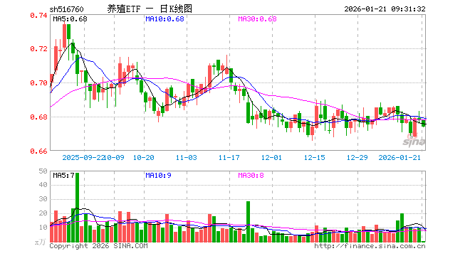 1月21日,养殖ETF(516760)开盘涨0.00%,报0.678元。养殖ETF(516760)重仓股方面,牧原股份开盘涨0.09%,温氏股份涨0.25%,海大集团涨0.00%,新希望跌0.34%,梅花生物涨0.00%,大北农跌0.25%,圣农发展涨0.12%,生物股份跌0.11%,天康生物跌0.42%,立华股份涨0.05%。