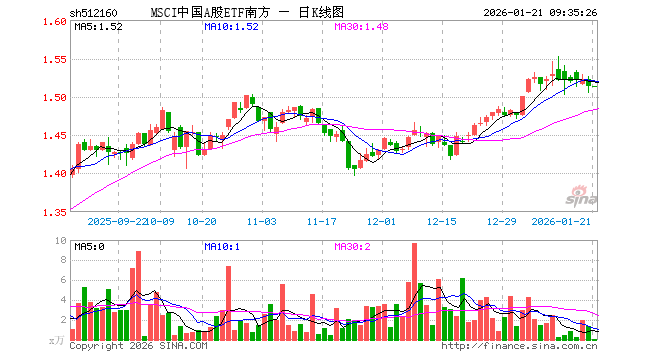 1月21日,MSCI中国A股ETF南方(512160)开盘涨0.00%,报1.514元。MSCI中国A股ETF南方(512160)重仓股方面,贵州茅台开盘涨0.00%,宁德时代涨0.67%,工业富联跌1.61%,招商银行涨0.49%,长江电力涨0.04%,紫金矿业涨1.21%,中国平安涨0.06%,比亚迪跌0.77%,海光信息涨3.65%,寒武纪跌0.57%。