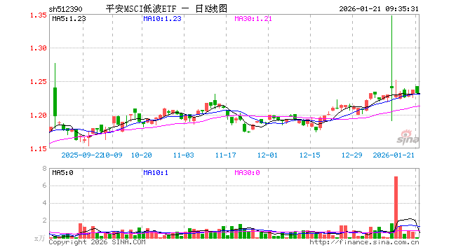 平安MSCI低波ETF(512390)业绩比较基准为MSCI中国A股低波动指数(MSCIChinaAInternationalMinimumVolatilityIndex)收益率,管理人为平安基金管理有限公司,基金经理为白圭尧,成立(2018-06-07)以来回报为62.16%,近一个月回报为3.09%。