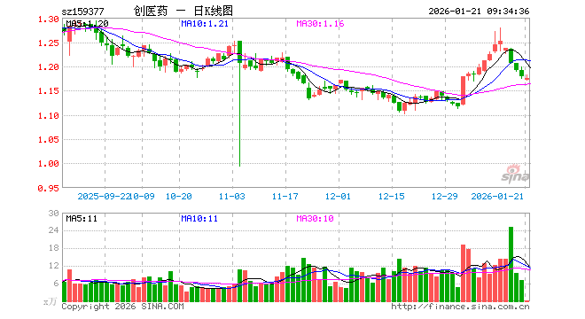 1月21日,创业板医药ETF国泰(159377)开盘跌0.68%,报1.171元。创业板医药ETF国泰(159377)重仓股方面,迈瑞医疗开盘跌0.05%,爱尔眼科跌0.09%,康龙化成跌0.32%,泰格医药涨0.28%,常山药业跌0.56%,爱美客涨0.00%,智飞生物跌0.82%,新产业涨0.35%,乐普医疗跌0.32%,沃森生物跌0.75%。
