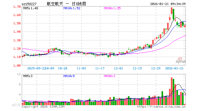 航空航天ETF(159227)业绩比较基准为国证航天航空行业指数收益率,管理人为华夏基金管理有限公司,基金经理为单宽之,成立(2025-04-30)以来回报为46.59%,近一个月回报为18.18%。
