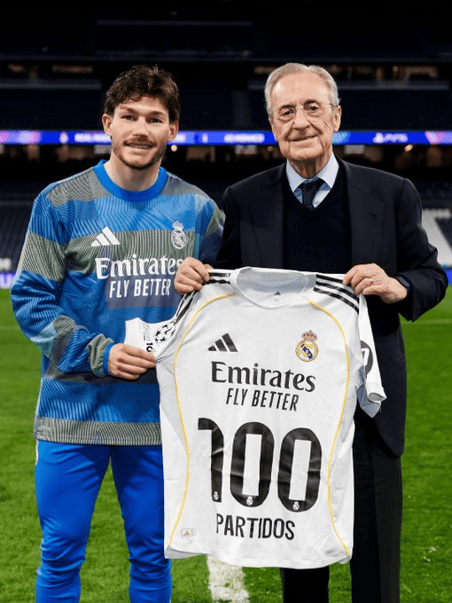 赛后,皇马主席弗洛伦蒂诺也赠予了他百场里程碑的纪念球衣。