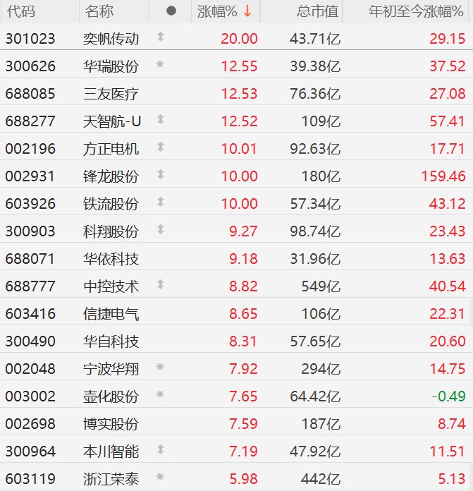 格隆汇1月21日|A股市场机器人概念股走强,其中,奕帆传动20CM涨停,华瑞股份、三友医疗、天智航-U涨超12%,方正电机、锋龙股份、铁流股份10CM涨停,科翔股份、华依科技涨超9%,中控技术、信捷电气、华自科技涨超8%,宁波华翔、壶化股份、博实股份、本川智能涨超7%,浙江荣泰涨超5%。