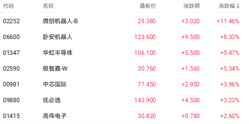 个股方面,微创机器人涨幅居前,盘中一度涨近16%。