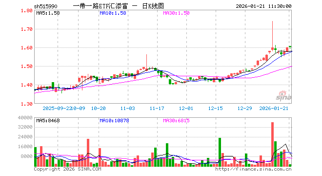 一带一路ETF汇添富(515990)业绩比较基准为中证国企一带一路指数收益率,管理人为汇添富基金管理股份有限公司,基金经理为董瑾、孙浩,成立(2019-11-06)以来回报为59.84%,近一个月回报为10.11%。