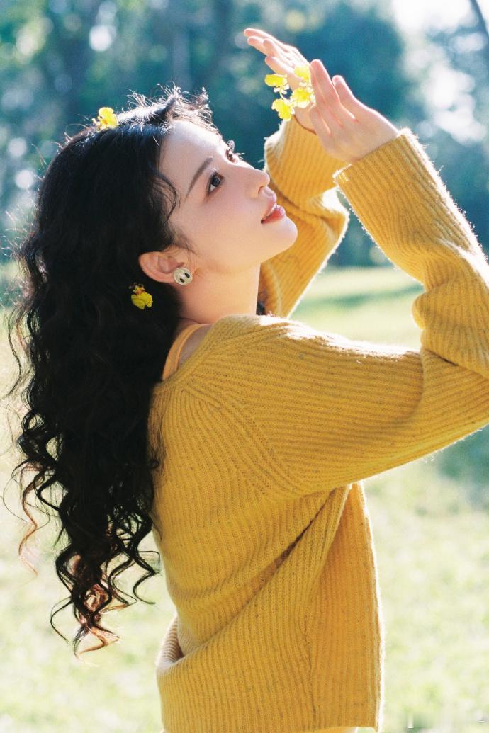 王楚然头像上新了王楚然的新头像系列太可了!黄色在绿草和花丛中显得特别清新,她笑