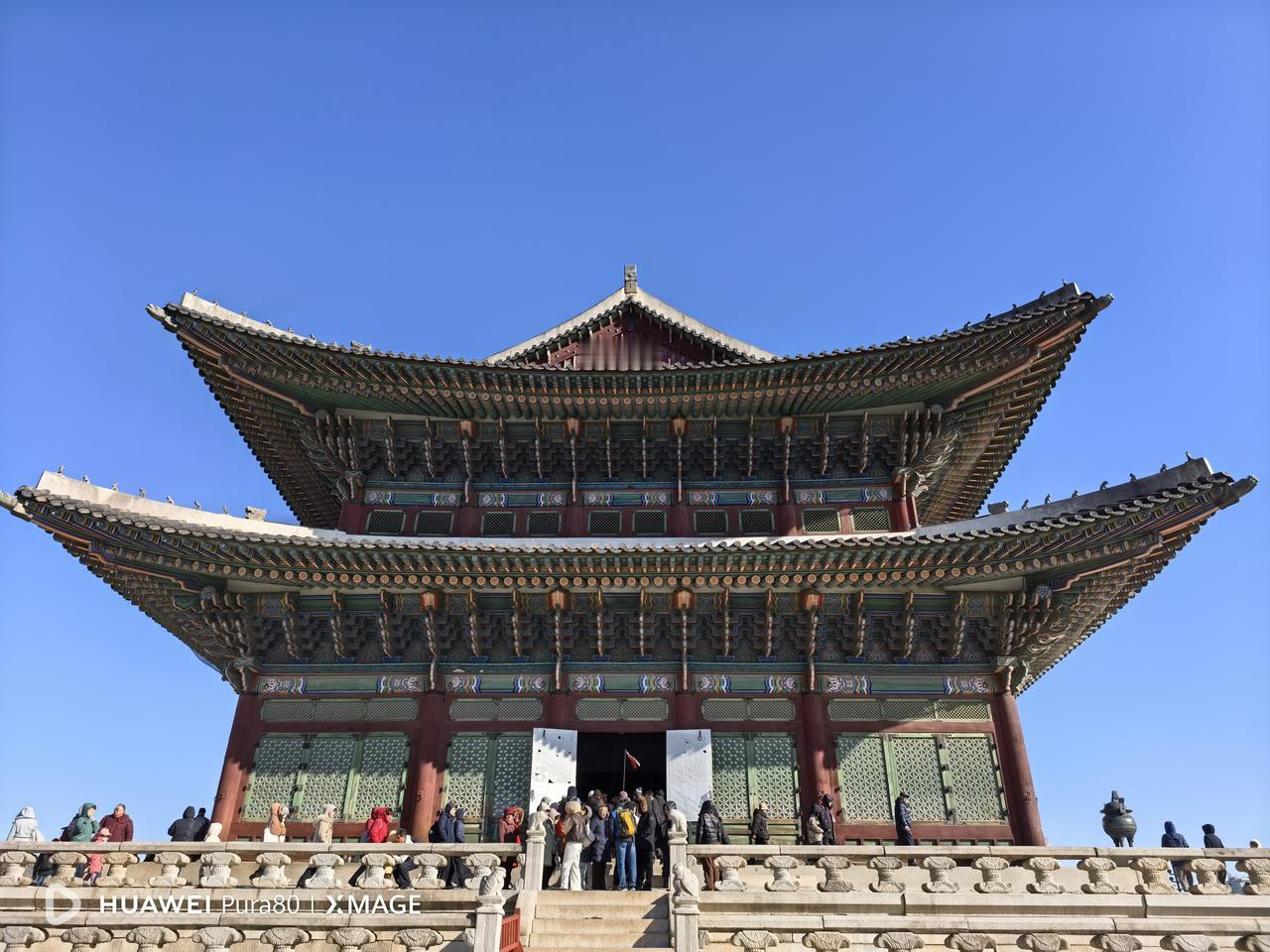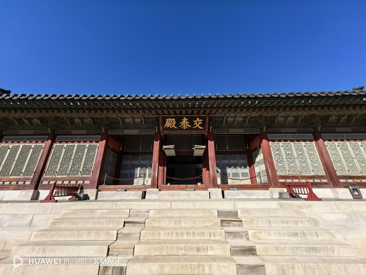 景福宫是朝鲜王朝的正宫,也是首尔五大宫之首,位于韩国首尔钟路区社稷路。始建于1395年,其名称来源于《诗经·大雅·既醉》中的“景福”二字。 1592年,因壬辰倭乱,景福宫几乎所有建筑都被烧毁,之后273年间未被复建。 1865年,由兴宣大院君下令进行二次修建,经过7年重建,基本恢复了极盛时的规模。 1910年日本吞并朝鲜半岛后,景福宫内大多建筑被拆除,仅保留正殿勤政殿、庆会楼等少数建筑。 1995年,韩国政府启动原址复建,2010年恢复光化门汉字匾额。 整体布局:占地面积为57.75公顷,呈正方形,南面是正门光化门,东为建春门,西为迎秋门,北为神武门。宫内整体格局以中轴线贯穿,建筑物分列两侧,体现了前朝后寝、后设花园的布局。 建筑风格:建筑材质以木、砖、瓦、石为主,屋顶多为歇山式,铺灰黑色筒瓦,暗红的柱,绿色窗棂加以衬托,整体色调柔和端庄。建筑装饰有龙、凤、云、花等图案,反映了朝鲜王朝时期的传统美学。 光化门:是景福宫的正门,最初被命名为“四正门”,后于1425年更名为“光化门”,取“光照四方,教化四方”的寓意。 勤政殿:是景福宫的正殿,也是建筑风格的集大成者,用于举行朝会和重大庆典。 庆会楼:位于勤政殿西北,是国王举行国宴和招待外国使节的地方,建筑坐落在水池之上,风景优美。 交泰殿:是王妃的寝宫,内部装饰精美,体现了朝鲜王朝时期的宫廷生活风貌