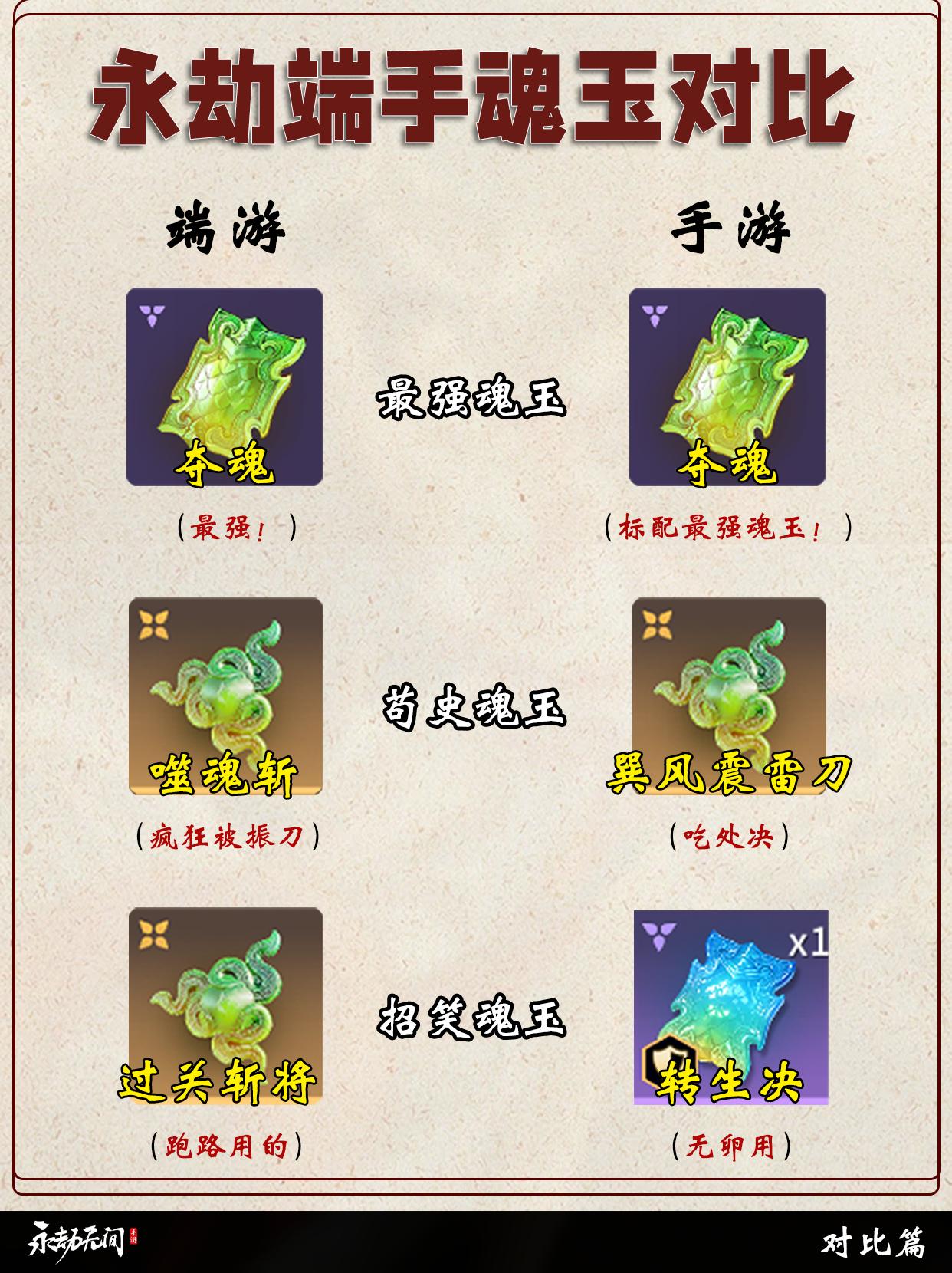 永劫端手英雄/武器/魂玉对比。