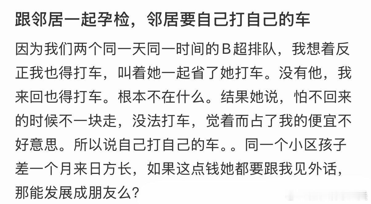 与邻居一同进行孕期检查时,邻居打算自己驾驶车辆。