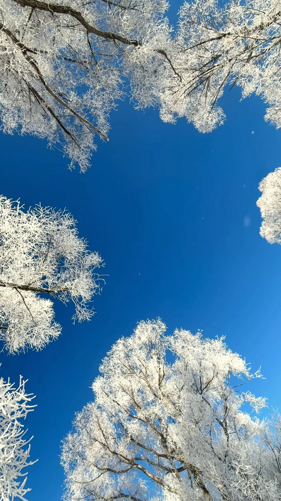 白桦林挂着雾凇,河流在冰层下呼吸