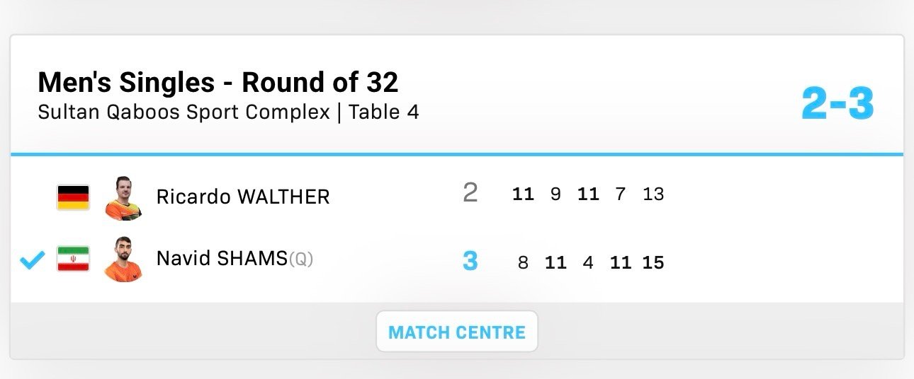 2026wtt马斯喀特挑战赛男女子单打32-16覃予萱3-1何天天巴特拉3-2凡菲罗娃沙姆斯3-2沃尔瑟