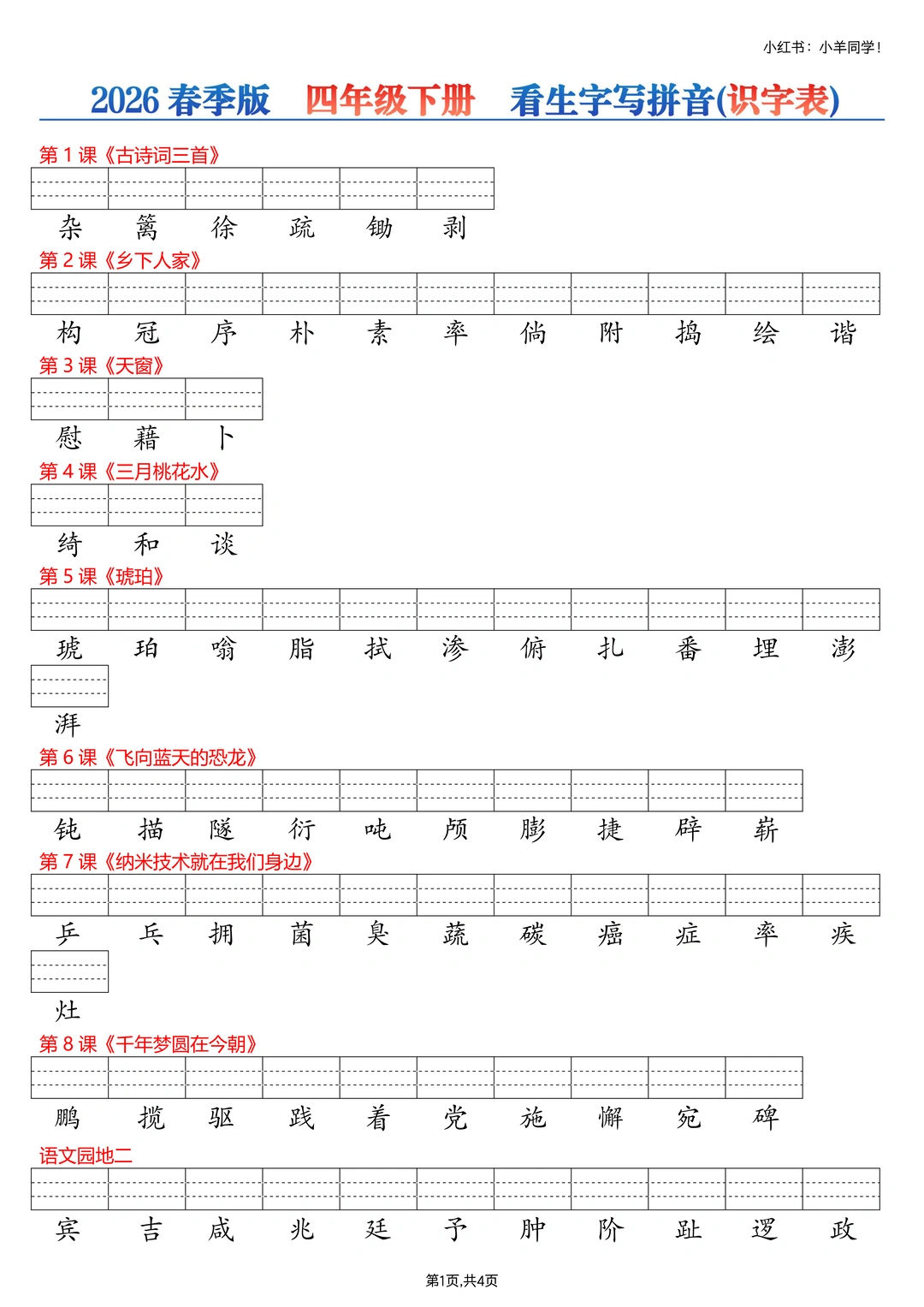 四年级下册丨课后生字词【看生字写拼音】
