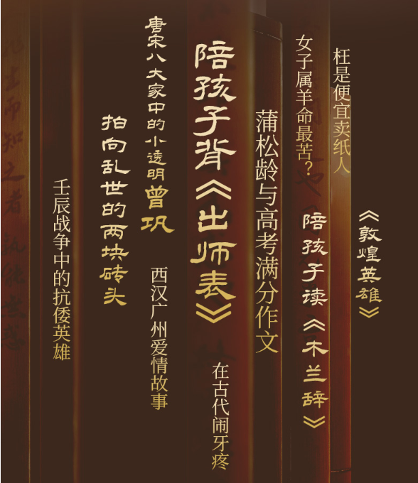 陪孩子背《出师表》、陪孩子读《木兰辞》、蒲松龄与高考满分作文、西汉年间的广州爱情故事、一桩从未发生过的奸盗案、中国古代闹牙疼的倒霉鬼们.....