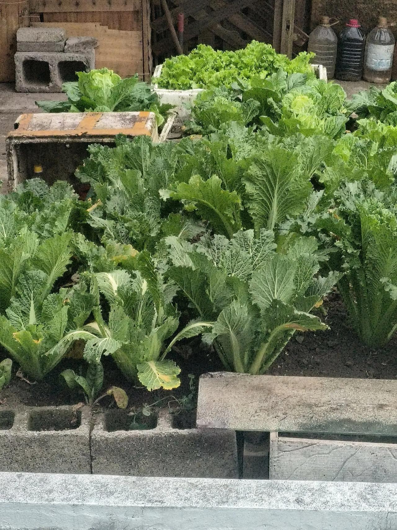 这是某户人家在楼顶开辟的空中菜园子,大概五六个平米,种了挺多的白菜。如果是边