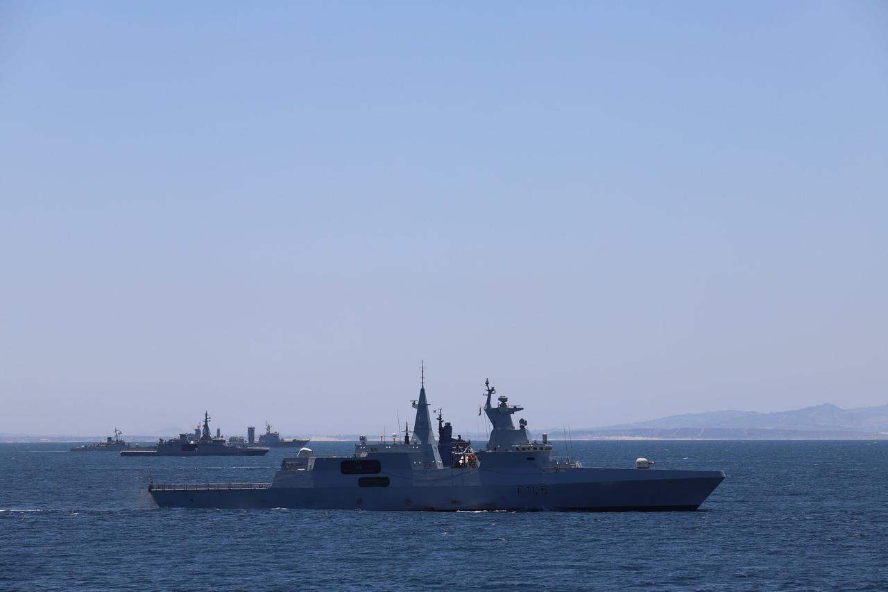 1月16日,由中国、俄罗斯、南非等金砖成员国参演的“和平意志-2026”海上联合演习闭幕式在南非西蒙斯敦举行。