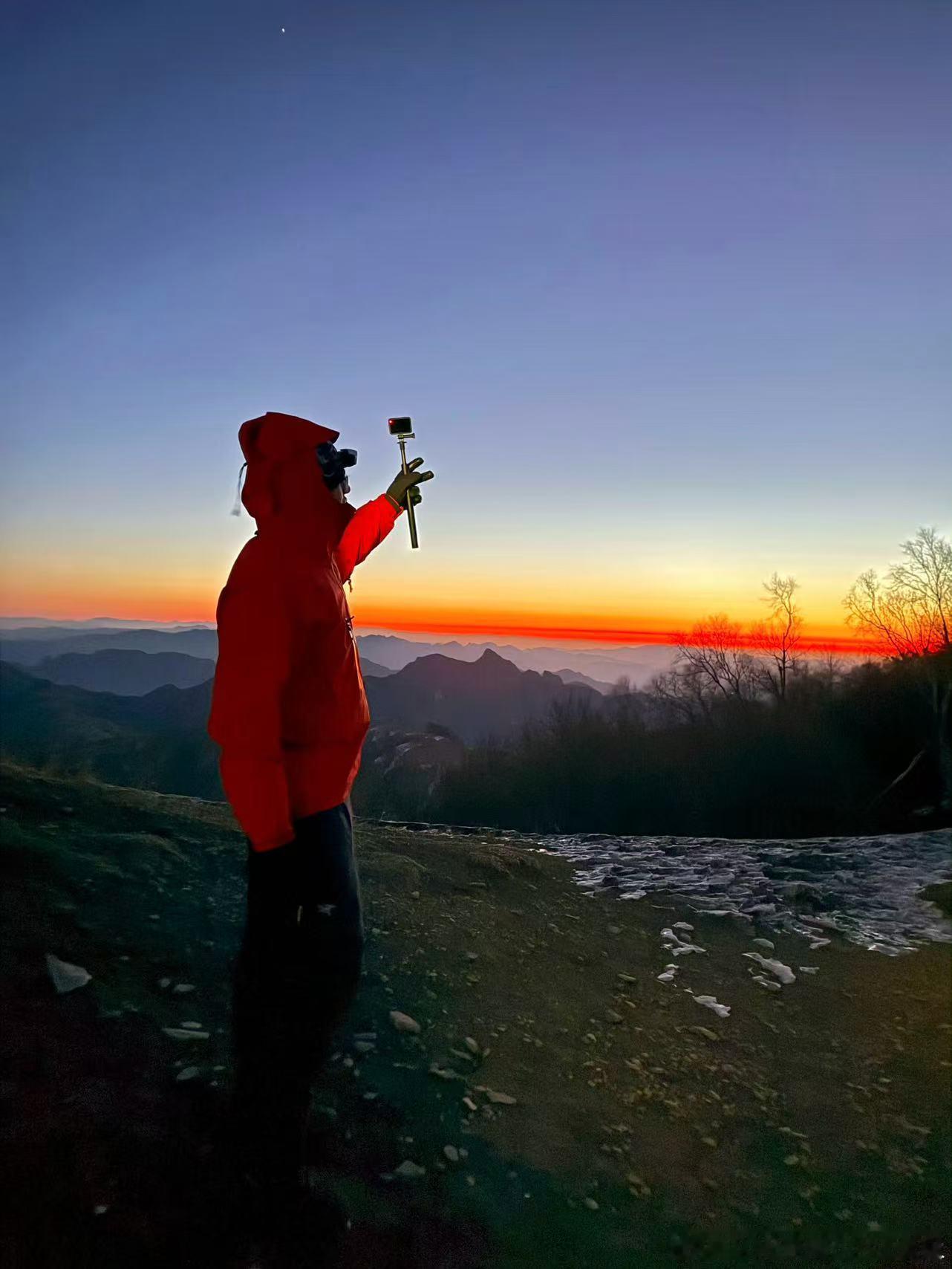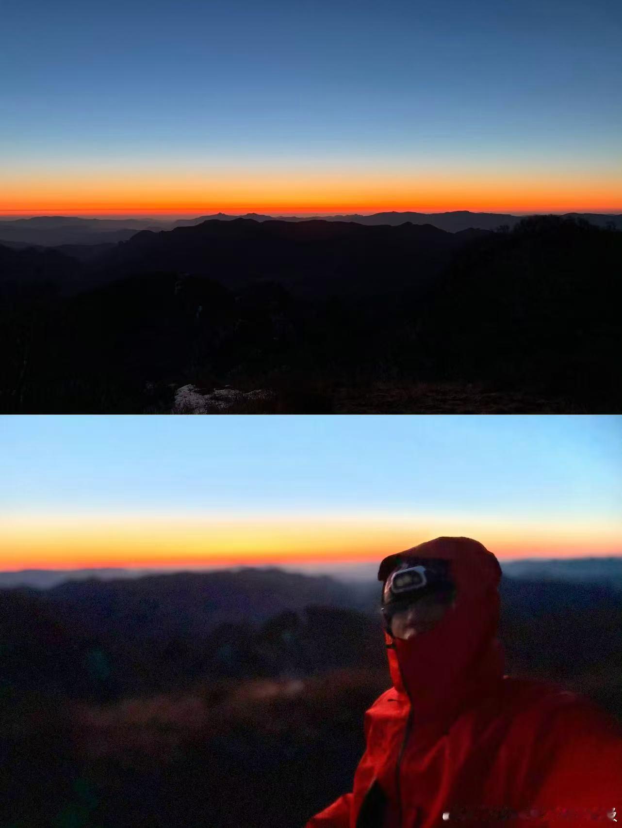 张极晒爬山照 山野间的少年太亮眼!夜爬赴一场日出之约,霞光裹着少年的鲜活,每一张