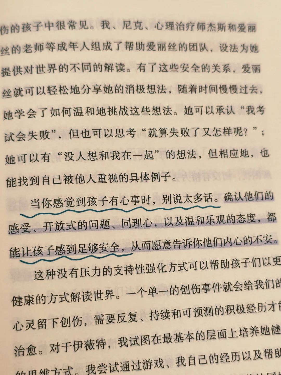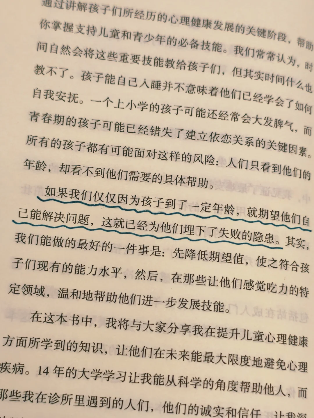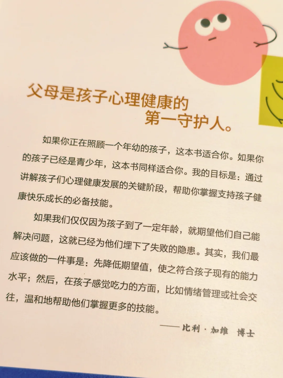 书里没有空喊口号,全是可落地的实操:幼儿期如何通过回应式陪伴建立安全感,学龄期怎样帮孩子应对学业压力,青春期如何化解叛逆背后的心理焦虑。读这本书更让我明白了,允许孩子哭,比强迫他笑更重要,这让我想起之前总忍不住批评哭闹的儿子“矫情”,现在才懂,那些被压抑的情绪,恰恰是心理问题的导火索。