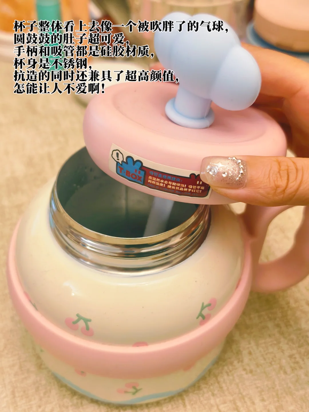 恐怕没有哪个具有少女心的女孩子会拒绝这款超萌超可爱的大肚杯吧!杯子整体看上去像一个被吹胖了的气球,圆鼓鼓的肚子超可爱,手柄和吸管都是硅胶材质,杯身是不锈钢,抗造的同时还兼具了超高颜值,怎能让人不爱啊!