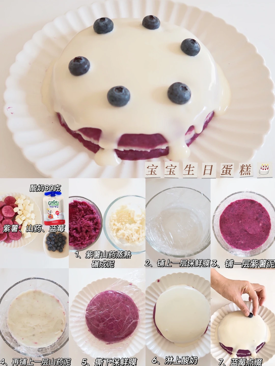 食材:酸奶80克、适量紫薯、山药、蓝莓