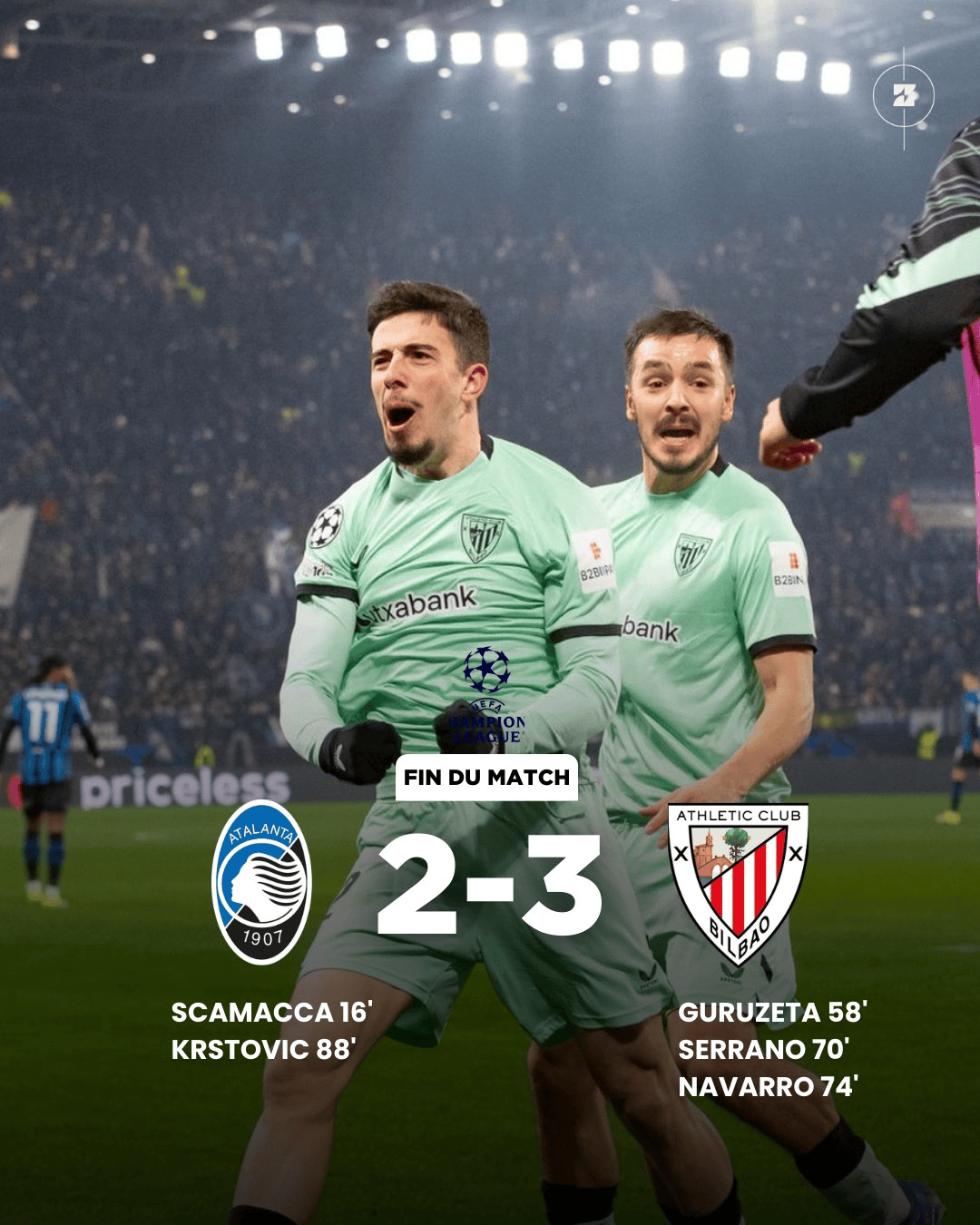 虎扑01月22日讯在刚刚结束的一场欧冠联赛阶段的比赛中,毕尔巴鄂竞技用他们高效的进攻在一场大多数时候处于被动局面的比赛里3-2客场击败亚特兰大,重燃欧冠出线的希望!
