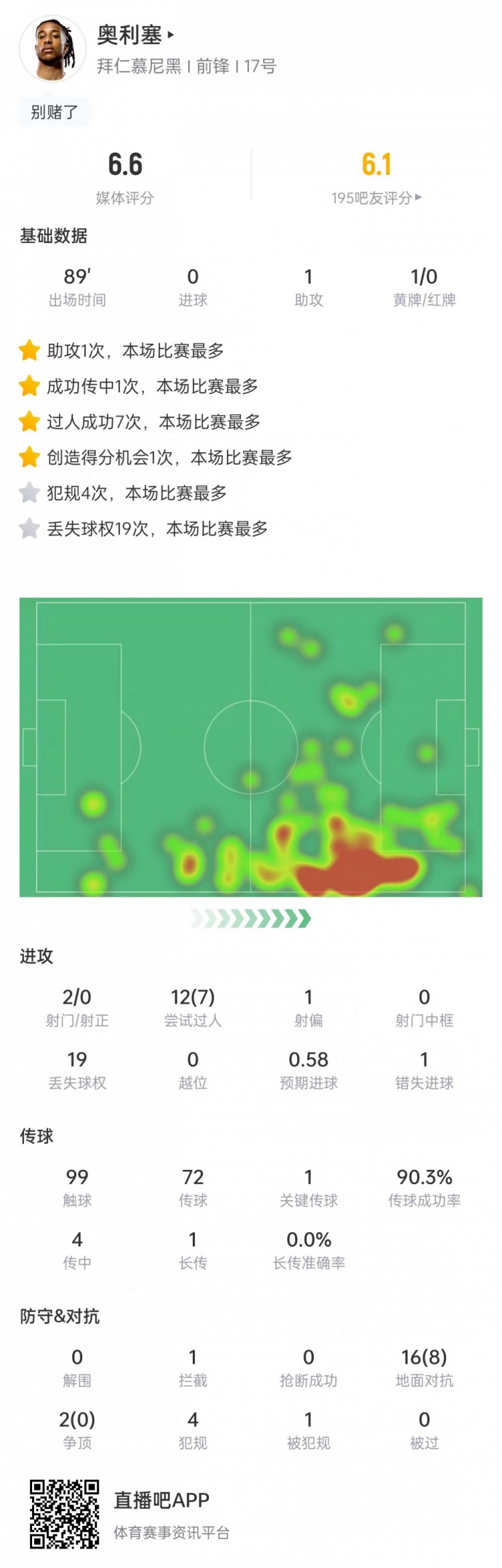 奥利塞本场比赛数据: