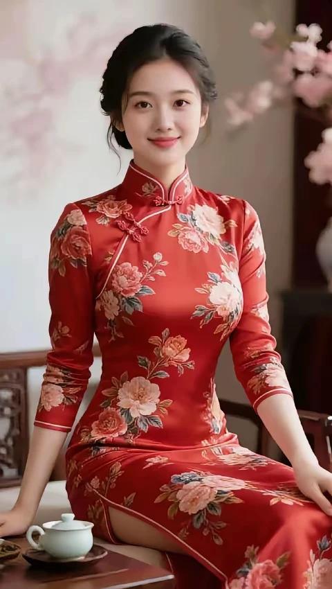 中国旗袍,东方美学。 百年传承,经久不衰。 文化底蕴,多元幻彩。 优雅风尚,国风古韵。 红绫才袂,优雅端庄。 温婉曲线,动人诗篇。 浅笑嫣然百媚生, 恰似仙女落人间。
