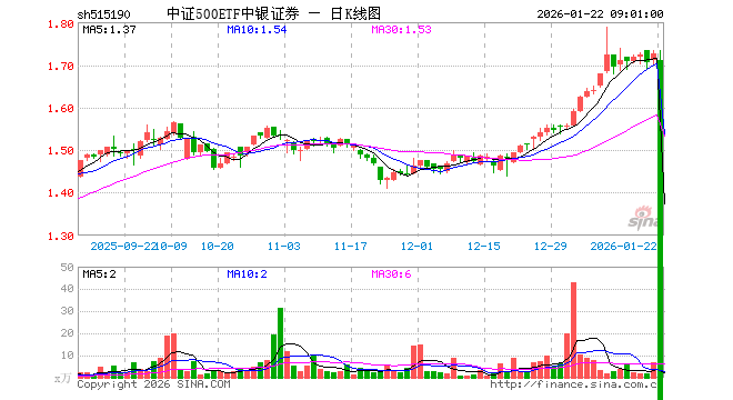 1月21日中证500ETF中银证券(515190)份额减少400.00万份,最新份额3.11亿份,最新规模5.40亿元