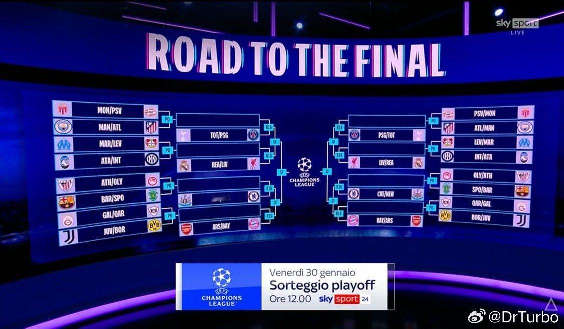 按照目前的排名 国际米兰将在附加赛中面对勒沃库森或者马赛尤文图斯2比0本菲卡切尔