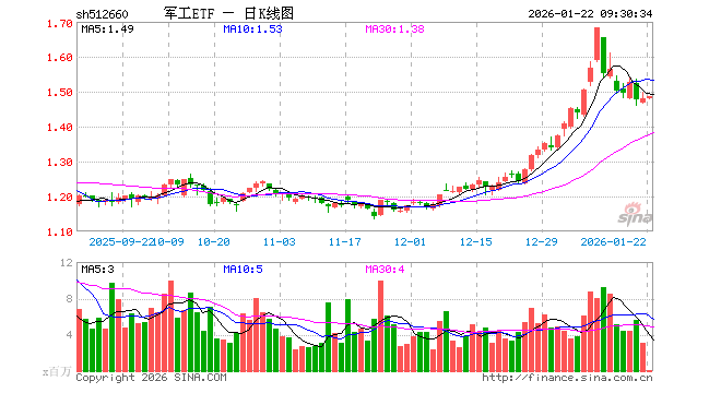 军工ETF(512660)业绩比较基准为中证军工指数收益率,管理人为国泰基金管理有限公司,基金经理为艾小军,成立(2016-07-26)以来回报为47.84%,近一个月回报为17.66%。