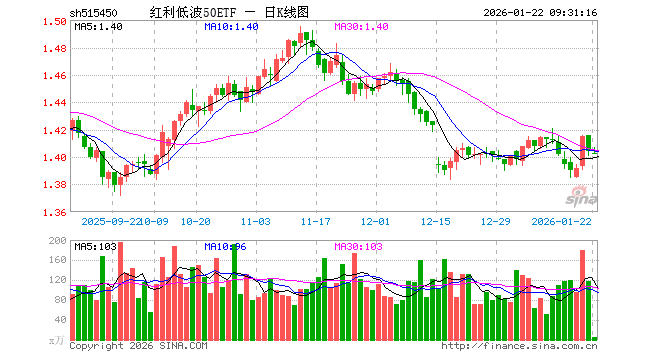 1月22日,红利低波50ETF(515450)开盘跌0.07%,报1.403元。红利低波50ETF(515450)重仓股方面,养元饮品开盘涨1.39%,洋河股份涨0.06%,中国外运涨0.17%,雅戈尔涨0.68%,陕西煤业涨0.09%,格力电器涨0.05%,双汇发展涨0.04%,中国神华涨0.05%,梅花生物跌0.09%,申能股份涨0.24%。