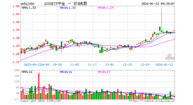 1月22日,A500ETF中金(512080)开盘涨0.52%,报1.341元。A500ETF中金(512080)重仓股方面,宁德时代开盘涨0.35%,贵州茅台涨0.07%,中国平安涨0.43%,招商银行涨0.08%,紫金矿业跌1.65%,美的集团涨0.60%,新易盛涨0.12%,中际旭创涨1.41%,东方财富涨0.00%,长江电力涨0.00%。