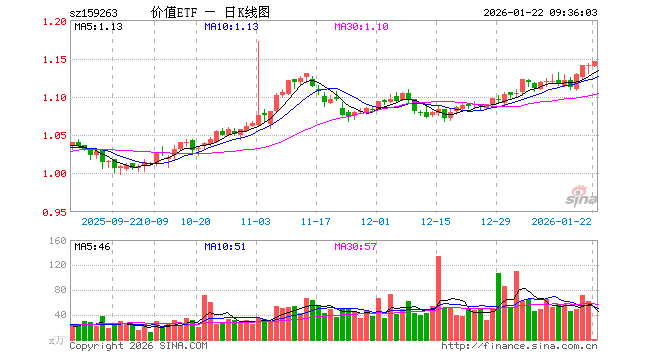 1月22日,价值ETF易方达(159263)开盘跌0.18%,报1.139元。价值ETF易方达(159263)重仓股方面,格力电器开盘涨0.05%,美的集团涨0.60%,兴业银行涨0.31%,中国石油涨0.80%,泸州老窖涨0.13%,潍柴动力涨0.13%,南山铝业跌0.77%,西部矿业跌1.18%,海尔智家涨0.15%,平安银行涨0.00%。