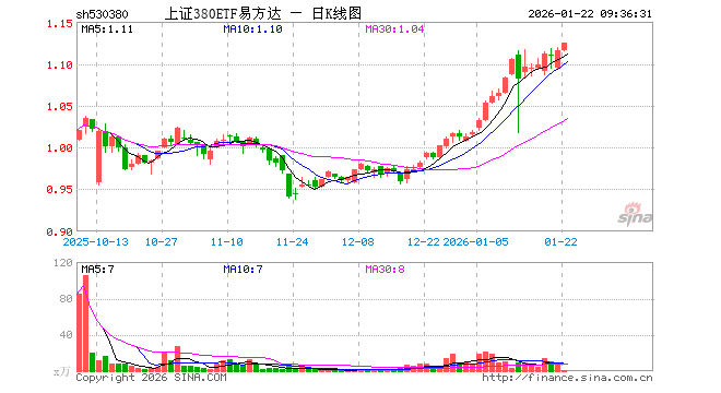 上证380ETF易方达(530380)业绩比较基准为上证380指数收益率,管理人为易方达基金管理有限公司,基金经理为张泽峰,成立(2025-09-22)以来回报为12.01%,近一个月回报为13.88%。