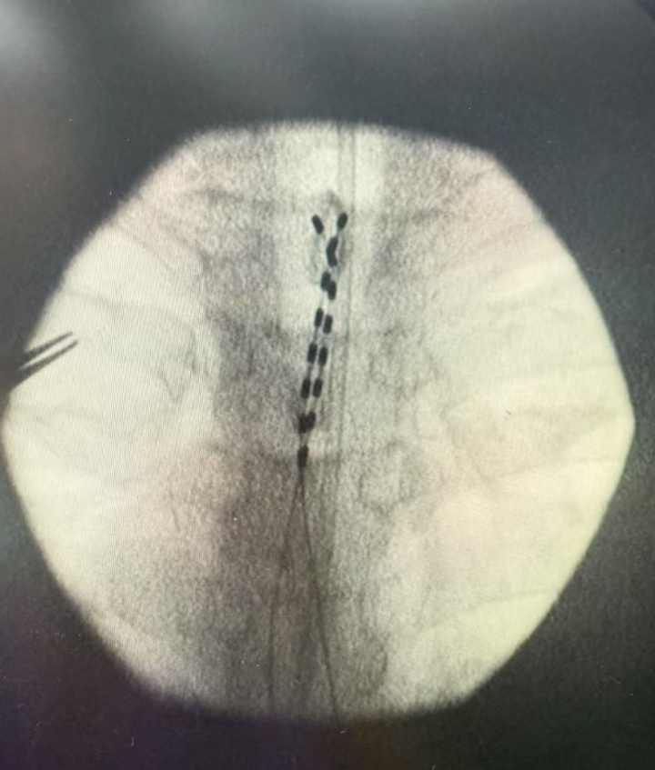“那是一位58岁的男性患者,因2型糖尿病导致胃轻瘫、糖尿病性周围神经病变,因此双侧胸背部疼痛难忍,双下肢无力,另外他还有很多复杂的基础病。简单地说,我为他做了脊髓电刺激术,即在脊髓植入两根电极和脉冲发生器后,他疼痛缓解了90%以上。”