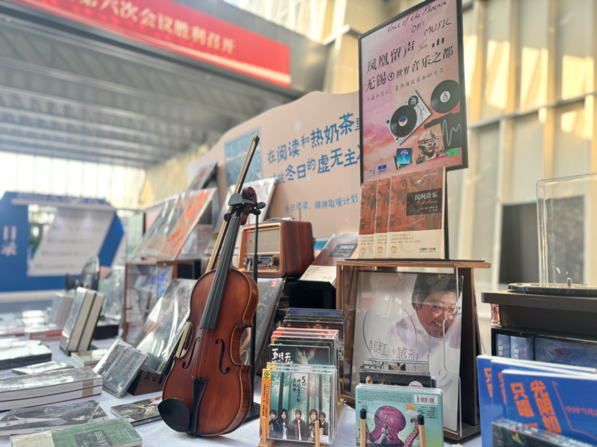 与往年不同,今年两会书展特别设置的凤凰“留声”专区别具新意。展台不仅配备了小提琴互动体验区,还同步陈列了音乐类图书、CD及黑胶唱片,包括《二泉映月》珍贵音像、中国二胡主题读物及阿炳等名家经典唱片等都在展品之列,深度呼应了无锡作为中国首个“世界音乐之都”这一城市名片,代表委员们在现场即可在乐声中解锁“音乐+购书”新体验。