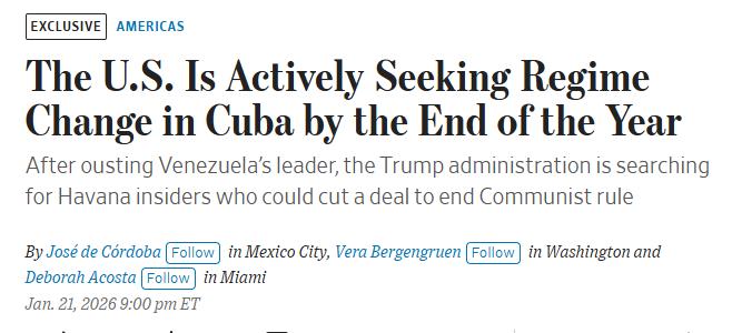 新闻快讯——华尔街日报消息,知情人士透露:借美方推翻委内瑞拉总统尼古拉斯·马杜罗之势底气大增,特朗普政府正暗中联络古巴政府内部人员,寻求达成协议以推动年内推翻该国政权。 消息来源WSJ
