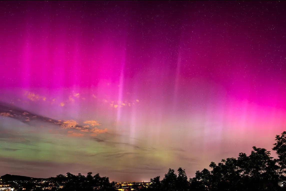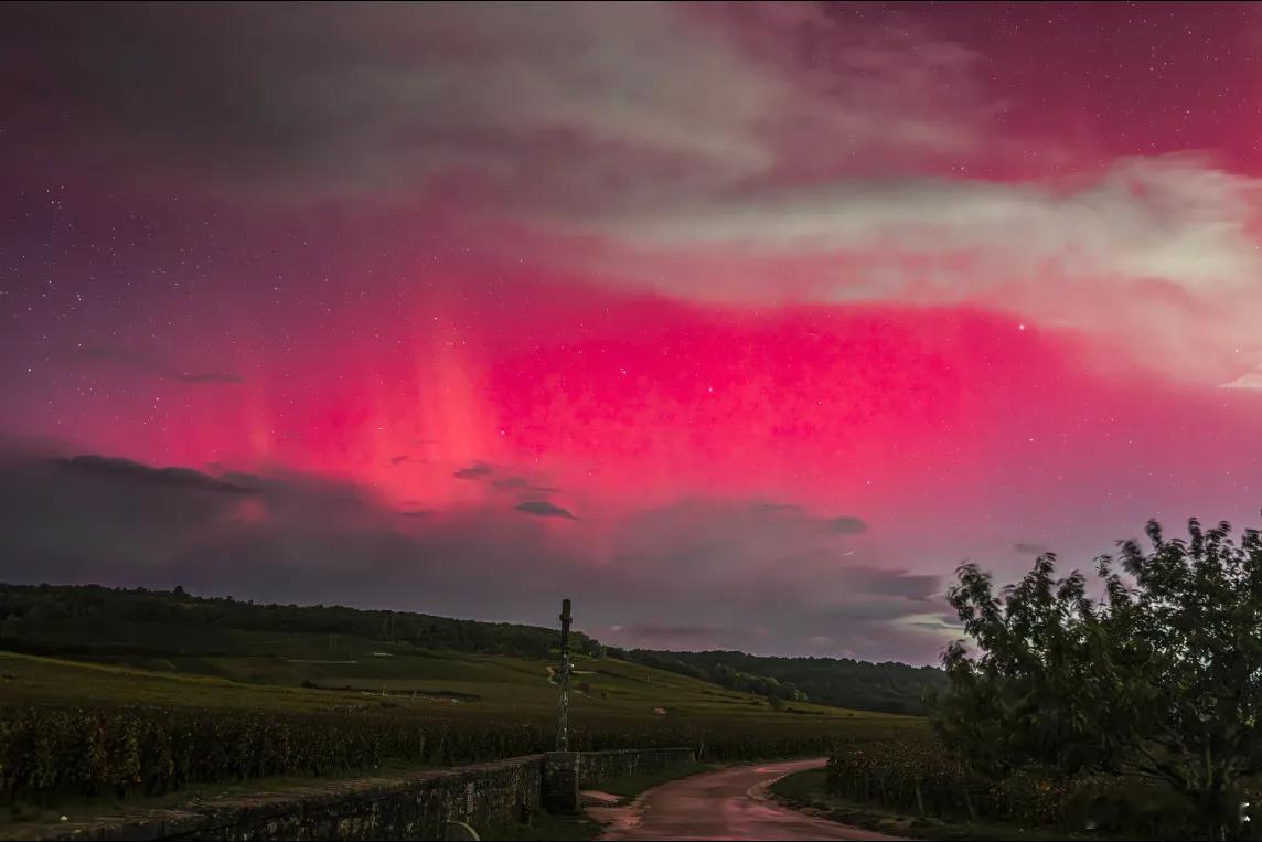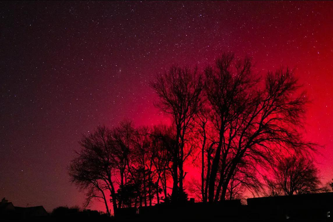 强烈太阳风暴袭击地球① 1月20日本次太阳风暴所产生的极光现象比往年都为明显,全球多地,甚至较低纬度地区都有可见报道。法国西北部,乃至西南地区也观察到了壮观的北极光。一场强烈的太阳风暴tempête solaire 于周一开始袭击地球,可能对电力réseaux électriques 和卫星réseaux satellitaires网络造成干扰,同时也将带来震撼的北极光aurores boréales景象,美国气象当局发出预警。美国空间天气预报中心Centre américain deprévision de la météo spatiale=SWPC的气象预测员肖恩·达尔Shawn Dahl在视频中解释,这场强烈的太阳风暴已于周一抵达地球,引发了5级量表中的4级地磁风暴。根据该中心预测,风暴将在周二继续,但强度将在当天逐渐减弱。尽管2024年曾出现一场时隔20年、强度达到5级的地磁风暴,但达尔指出,目前这场风暴是“自2003年以来最强的一次”。2003年10月的“万圣节太阳风暴”tempête solaire "d'Halloween"曾导致瑞典大面积停电,并破坏了南非的部分电力设施。如此强烈的现象较为罕见,通常与太阳活动有关。本次风暴正是由于“前一天发生的一次强烈太阳爆发éruption solaire ”所引起的,达尔补充道。被抛射出的太阳粒子particules solaires 会扰乱地球的磁场champ magnétique ,除引发北极光外,还可能导致高频通讯受损dégradation des communications à haute fréquence、卫星运行受干扰perturbations pour lessatellites,以及电网过载surcharges sur le réseauélectrique。此次风暴可能引发北极光“舞动”的景象ballets d'aurores boréales,甚至在一些通常看不到极光的地区也可能观测到。美国气象当局指出,美国南部的阿拉巴马州Alabama都有可能观赏到极光。