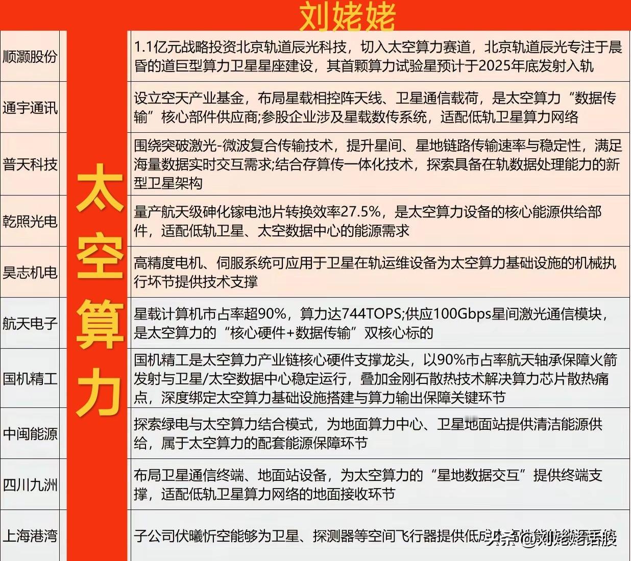 【“太空算力”利好】热点事件:2026年1月23日-25日,第三届北京商业航天产业高质量发展大会暨2026北京国际商业航天展览会将在北京北人亦创国际会展中心举办。 该大会将对“太空算力”赛道直接利好。相关受益核心龙头汇总如下图。 关注“刘姥姥”,精彩分享真不少(麻烦亲们:点赞,收藏,分享)。 特别提醒:本文涉及内容及个股,仅供交流与参考,不是荐股,不得以此作为买卖依据,盈亏自负。算力产业链机会 算力板块机会 太空算力 太空算力卫星