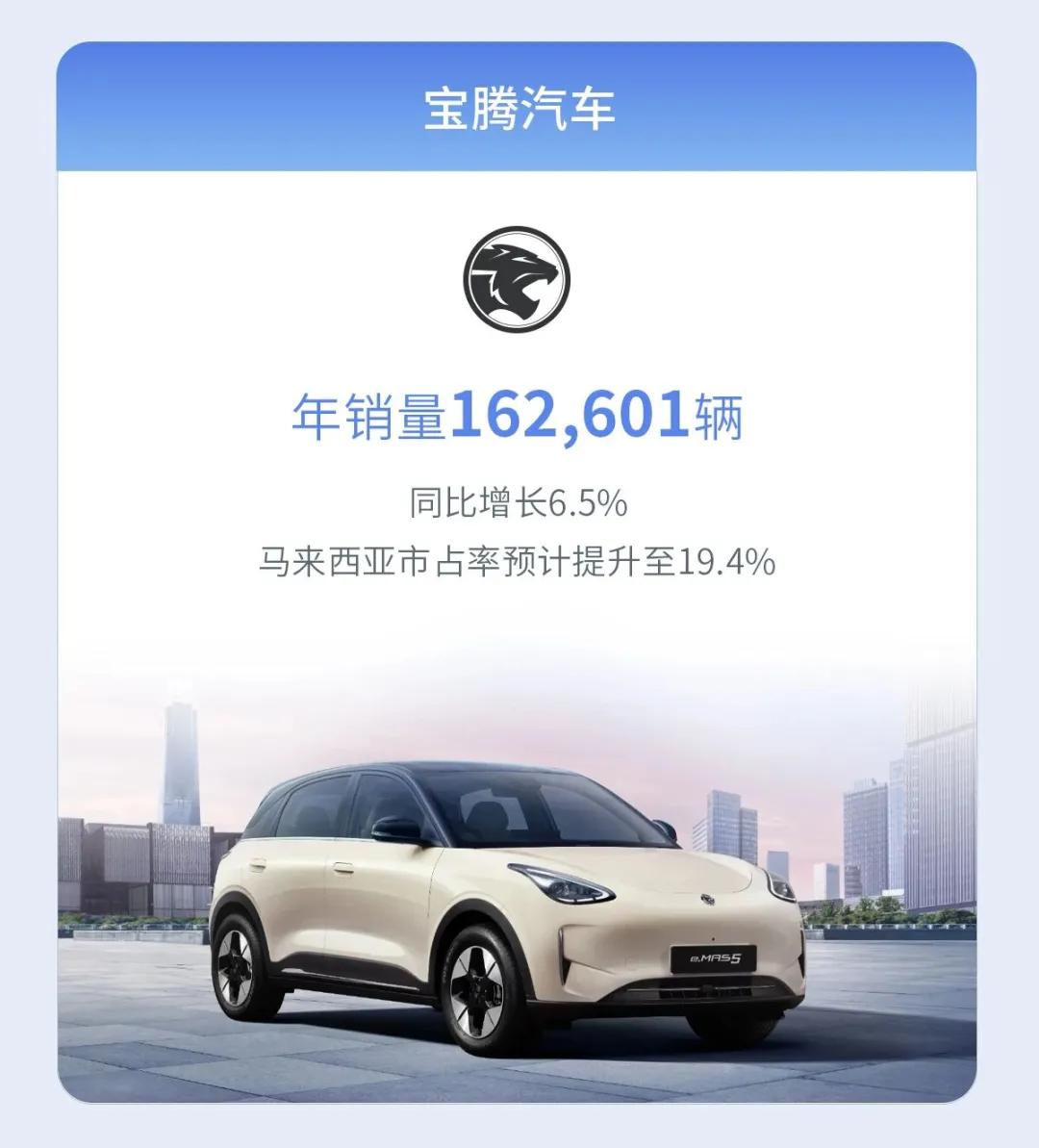宝腾汽车2025年销量162,601辆,同比增长6.5%,连续第7年稳居马来西亚全国汽车销量排行榜第二名,市占率预计提升至19.4%。全年出口量6000辆,为2012年以来最高,同比增长26%。