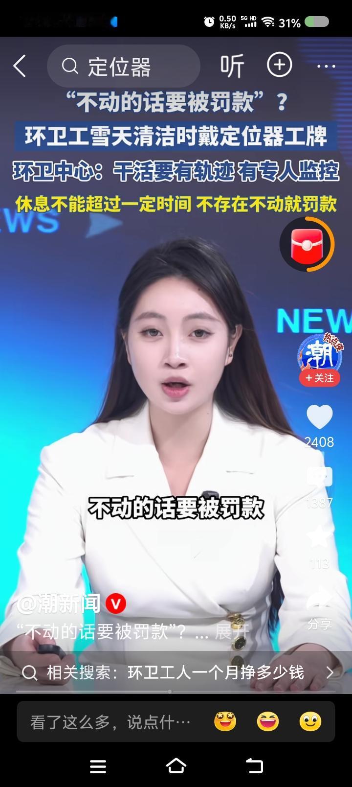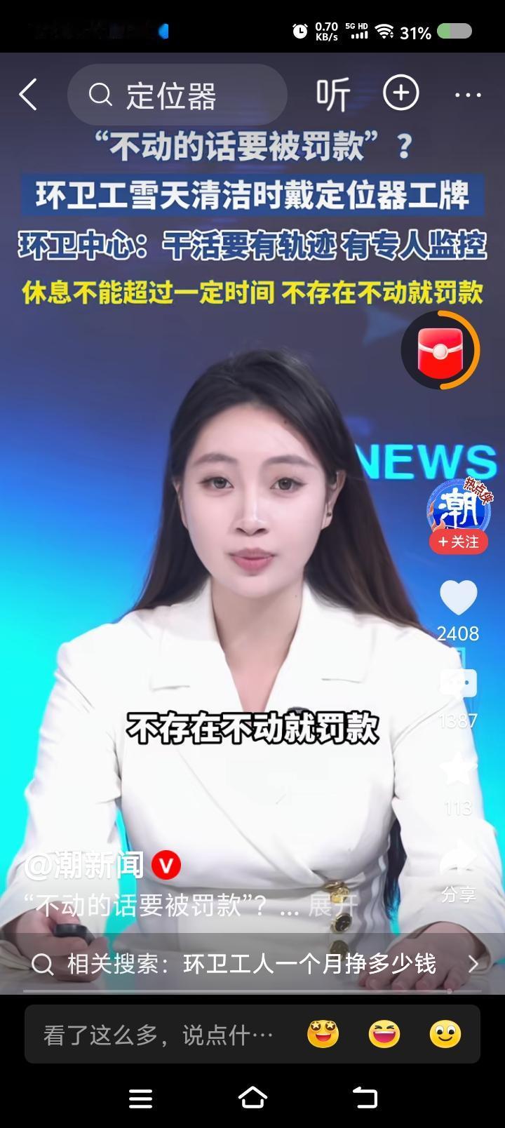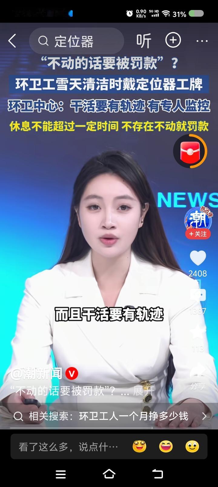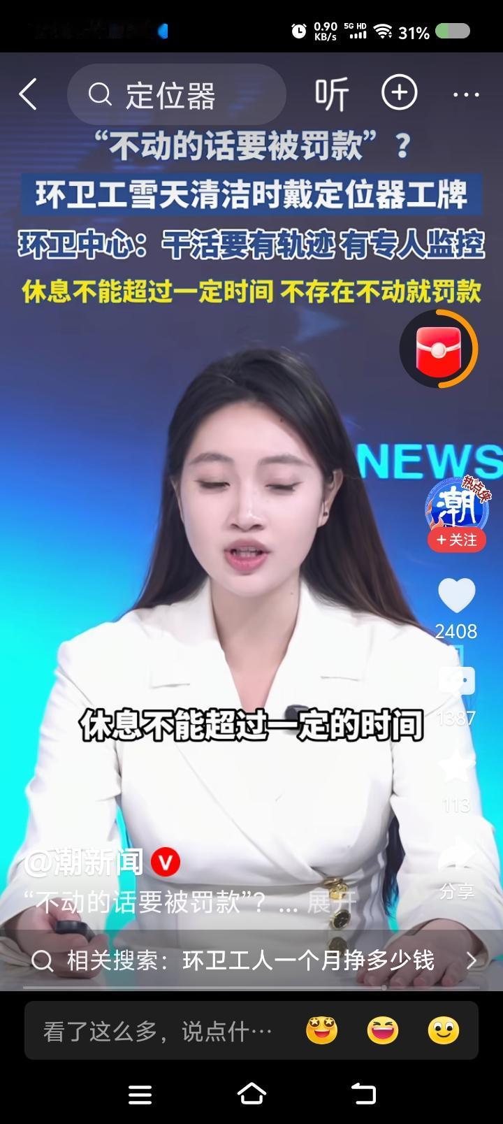 环卫中心,你何以服众?—— 据报道,山西某地环卫工人雪天作业,被路人问“不休息吗”,工人回应:“身上有定位器,不动就罚款。”环卫中心回应:“戴定位器是为了安全,休息有一定时间,干活要有轨迹,有专人监控,不存在不动就罚款。” 点评: 一、环卫工人是不是劳务公司派的?政府部门与劳务公司签合同?为什么政府部门不与劳动者直接签合同? 二、戴定位器合适么?扫雪还能丢了?雪有两米高?这是人,不是机器人,你监控啥?这是自由社会,你监控啥?干多少活什么标准多长时间干完,规定下发,你考核就行,有必要死规定人在干什么吗? 建议调查此事件!若管理违法违规,必须依法办理!若不够人性化,建议更改。