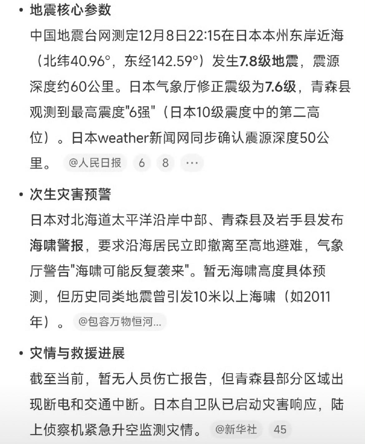 太突然了!刚刷到日本专家预测地震可能致1.8万人遇难,今天就真的震了,时间点太巧合。 日本预测首都圈可能发生7.3级直下型地震,最坏情况得有近2万人遇难,经济损失更是高达83万亿日元,想想都可怕。 北京时间22点15分,日本本州东部海域突发7.5级强震,震源深度50千米,东京都有明显震感。日本气象厅立马发了海啸警报,说部分海域可能有最高3米的海浪,NHK直接中断节目紧急直播,一遍遍催沿岸民众赶紧往安全地方躲,自卫队也已经启动灾害应对。 日本地震海啸 日本大地震