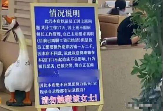 河南,真是碰到狠人了!一女子躺人家店门口,头部用帽子盖住,整整赖了4天趴地不起。店家没辙,在女子旁边树立一个牌子,说明了情况:女子是本店员工,自行离职,但是如今又过来讹诈1万2千元,不给就耍赖。很多部门人员过来沟通,但是女子也不起身、也不说话,遇到这样的无赖,可该怎么办? ”   河南商丘有家小餐馆,2026年1月以来,被一件事搅得鸡犬不宁。原本平平淡淡的生意,因为门口天天躺着一个人,变得冷清了不少。   这人是名中年李姓女子,每天一到餐馆开门时间,就准时躺在店门正前方的地上。她头上扣着一顶黑帽子,帽檐压得低低的,把大半张脸都遮了个严实。   不吵不闹,也不跟路人纠缠,有人问起就简单提一句老板欠她钱,之后便不再作声。身旁立着块红牌子,写着自己曾是店里员工,工资已结清,如今是来要赔偿的,双方有纠纷。   路过的客人瞧见这场景,大多会下意识躲开。做餐饮最看重门面和人气,客人要么远远看见就绕路,要么走到门口又转身离开。   连续几天下来,餐馆饭点本该坐满的桌子,常常空着大半。老板崔先生看在眼里,急在心里,这生意没法正常做,每天都在赔钱,就像心里被堵住一样难受。   为了不让路人误会是拖欠工资,崔先生也在门口立了块牌子,把事情前因后果写清楚。   可根本没人细看,大家只认门口躺着人的事实,解释的速度远远赶不上负面影响扩散的速度。   崔先生没少想办法解决。几次报警求助,警察来了之后,也只能了解情况、调解劝说。现场没有打架闹事,也没有严重扰乱秩序的行为,警方没法采取强制措施,只能建议双方走法律途径。   他还叫过救护车,可医护人员一到,李女士就坐起来说自己没事,救护车一走又立刻躺下,反复几次后,救护车也不再来了。   这场僵局的根源,要从1月初说起。李女士当时来餐馆后厨做面点,刚来几天还算积极,每天提前到岗,干活也主动。   可她做活的方式,总跟店里的标准流程对不上,后厨负责人提醒了好几次,她也没怎么改正。   矛盾的爆发在1月9号。那天李女士做的一批饼,发面时间没把控好,顾客吃了当场就表示不满意。   厨厨师长一时情绪激动,当着其他员工的面,说了些不好听的话。李女士当场就撂挑子,把手里的东西一放,说不干了就要走,厨师长也没挽留,让她走了。   当天晚上,崔先生就把李女士十七天的工资,一分不少地结清了,转账记录都保存着。   在他看来,雇佣关系结束,工资结清,这事就该翻篇了,双方互不相欠。   没成想,第二天李女士就找上门来,说法跟之前完全不一样。她坚称自己是被辞退的,要求店里赔偿一万两千块钱。   崔先生当场否认,说她是主动离职,不存在辞退,自然也没有赔偿的说法。俩人在店门口争了半天,各说各的理,谁也不肯让一步,最后闹得不欢而散。   从那以后,李女士就开始了在店门口躺卧的举动。她很懂分寸,不堵后厨门,不进店里闹,也不跟员工发生肢体冲突。   就用这种安静却极具存在感的方式,天天守在门口,店开门她就来,店打烊她就走,日复一日重复着同样的行为。   但凡有点眼力见的人都能看出来,李女士这么做就是故意的。她耗得起时间,可崔先生的餐馆耗不起。崔先生也盘算过,要是拿出一万两千块钱,这事或许当天就能了。   可他心里犯嘀咕,一旦给了钱,就等于承认自己理亏,以后再遇到类似情况,根本没法立足,小本生意经不起这样的先例。   商场管理方和社区调解人员,都上门介入过。可李女士根本不配合协商,不表态也不改变做法,就这么硬扛着,不退不让。   这场拉锯战持续到现在,还没有结果。崔先生的生意受影响,每天都在承受损失;李女士也耗着自己的时间和精力,进退两难。   两人付出的代价,早就超过了那一万两千块钱的纠纷本身,最后落得个两败俱伤的局面。   生活里遇到纠纷很正常,硬碰硬的僵持从来解决不了问题。与其互相消耗,不如走合法途径沟通协商。多一份理性,少一份执拗,才能避免得不偿失,让事情朝着好的方向发展。