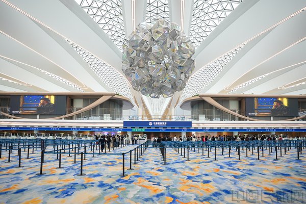 据悉,T3航站楼边检大厅总面积超过4000平方米,是T1航站楼边检大厅的2.5倍,可同时容纳约1200人出境候检和1500人入境候检,设计容量可满足2030年国际旅客吞吐量预计达900万人次的需求,较T1航站楼空间利用效率(旅客吞吐量/航站楼面积)提升超50%,为全方位门户复合型国际航空枢纽提供持久动力。