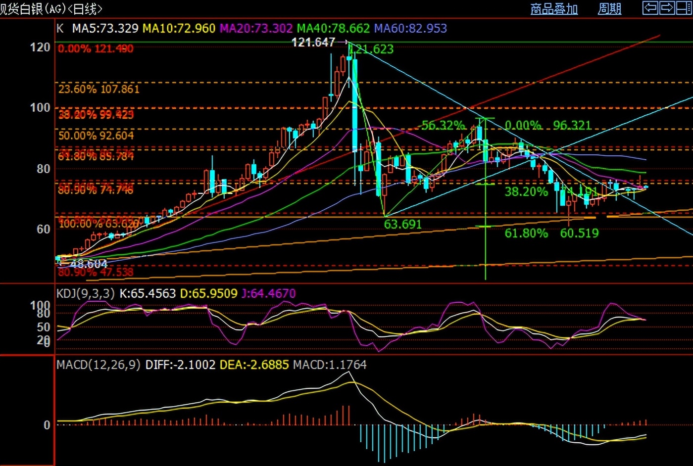 国际白银,61美元以来上涨看似凶猛,幅度并不大,目前依然15美元左右幅度,不足前段时间一天的波动。不过,和前些年相比,还是很大,一周抵之前半年波动。