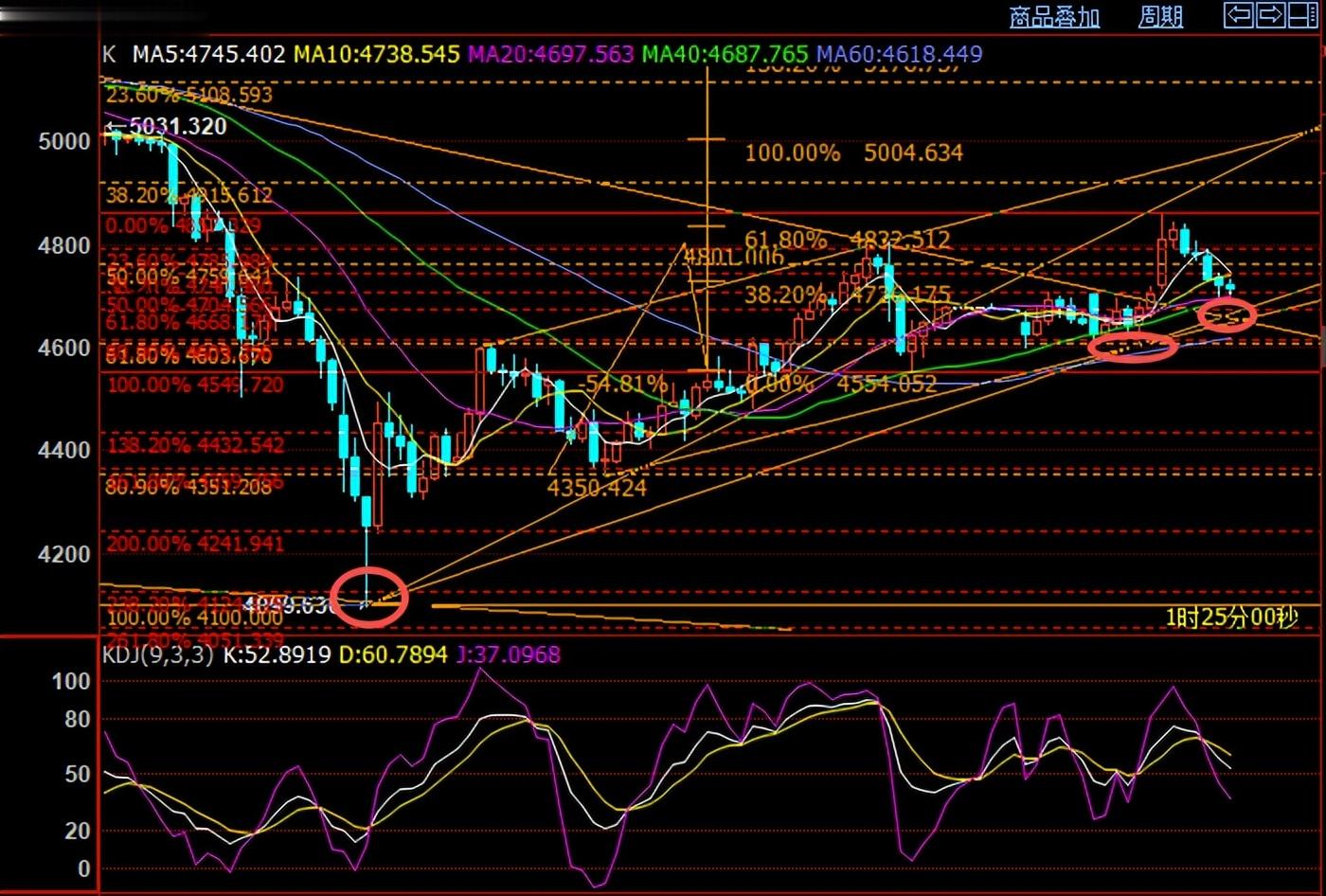 刚刚我们说了4700~4690美元是短期重要的支撑,多空拉锯,不破还会有反弹;这里下破了的话,那下一个关键支撑就是4600美元及10日均线区域。对于4600美元和10日均线怎么说呢?最近几天我们反复强调这是多头的关键;没有消息推动也是难以下破,一旦受利空推动向下破位,那不用想,行情直接是再次转向空头主动;继续跌向4500美元和4400美元下方将不再是难事。