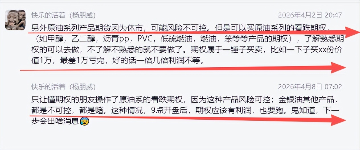 我们昨天不但积存金没追涨,并且黄金白银杠杆产品还在高位做了空单;原油系列产品,我们在下跌之前(110美元上方)买了看跌期权,跌下来之后收割利润,基本上是50%到1倍的利润;并且我们还在低点做多了原油,那你说气人不。