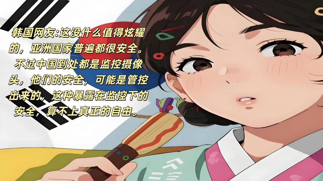 韩国网友却持不同观点:“这没什么值得炫耀的,亚洲国家普遍都很安全。不过中国到处都是监控摄像头,他们的安全,可能是管控出来的,这种暴露在监控下的安全,算不上真正的自由。”这种观点在Reddit等平台上引发了激烈辩论,有人认为监控确实提高了安全性,也有人质疑这种模式的可持续性。