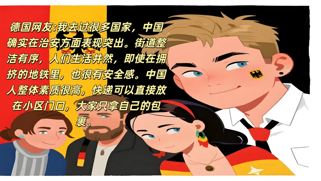 德国网友提供了更加客观的视角:“我去过很多国家,中国确实在治安方面表现突出。街道整洁有序,人们生活井然,即使在拥挤的地铁里,也很有安全感。中国人整体素质很高,快递可以直接放在小区门口,大家只拿自己的包裹。”这种社会信任度,在西方国家确实比较少见。