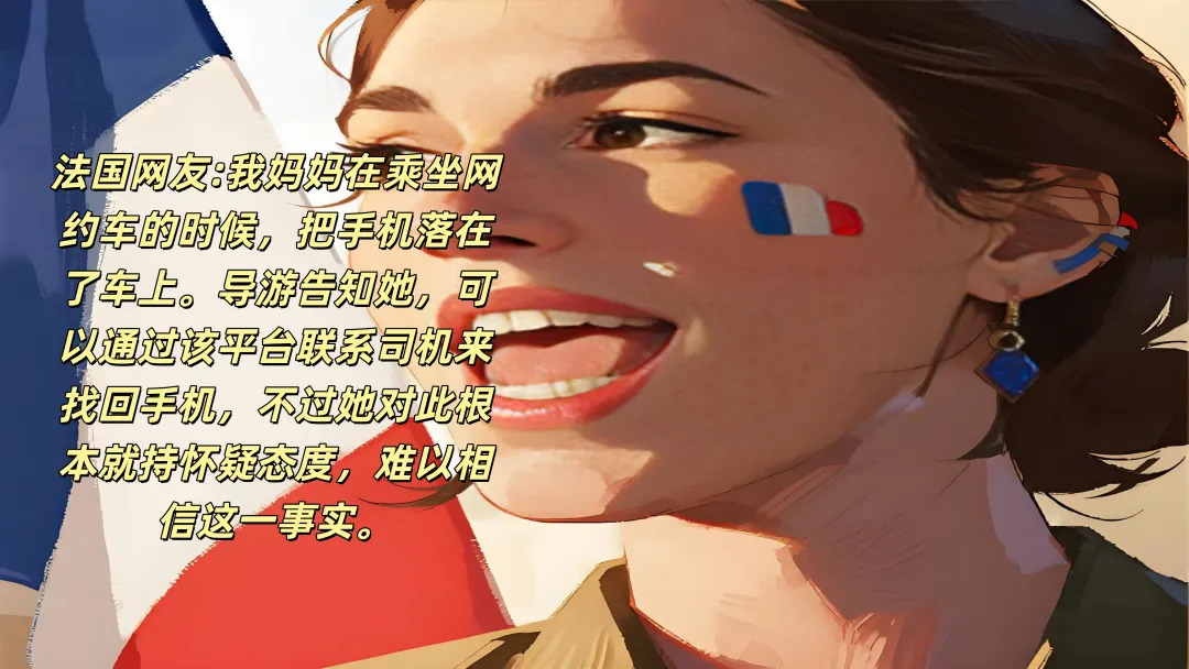 另一位法国游客则回忆起这样一次经历:我妈妈在乘坐网约车的时候,把手机落在了车上。导游告知她,可以通过该平台联系司机来找回手机,不过她对此根本就持怀疑态度,难以相信这一事实。