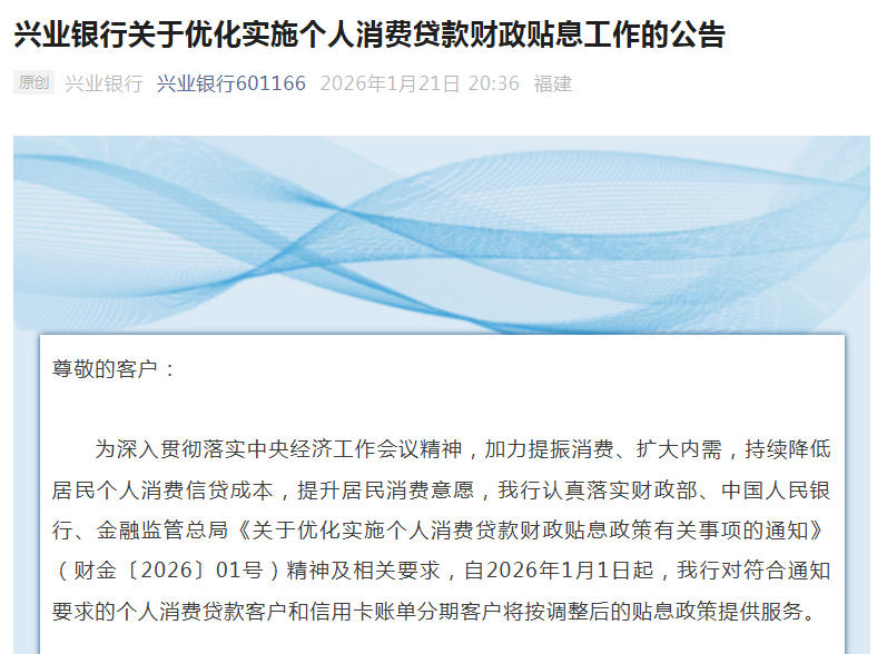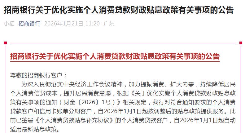 多家银行公告!落实个人消费贷款最新财政贴息政策
